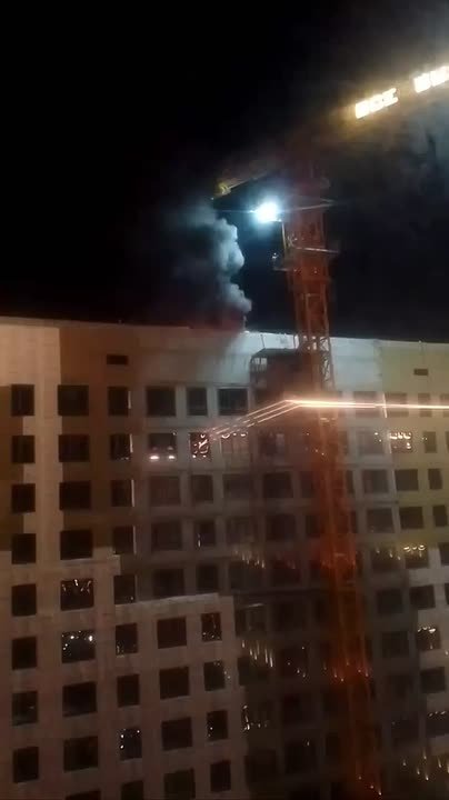 В микрорайоне «Хороший» горит крыша строящегося 18-этажного дома.