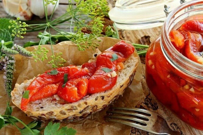 Эта простая, но яркая закуска готова к подаче! Не упустите шанс удивить гостей и порадовать своих близких непревзойденным вкусом и ароматом овощной закуски из печеных перцев.