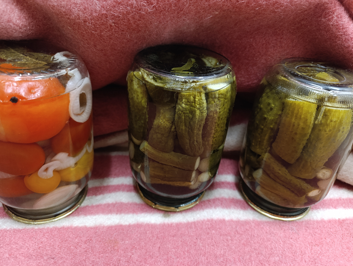 - Герметичность: Горячие банки нужно закрывать стерильными крышками. После укупорки переверните их вверх дном и оставьте в таком положении до полного остывания — это поможет проверить герметичность и дополнительно обработает крышки.
