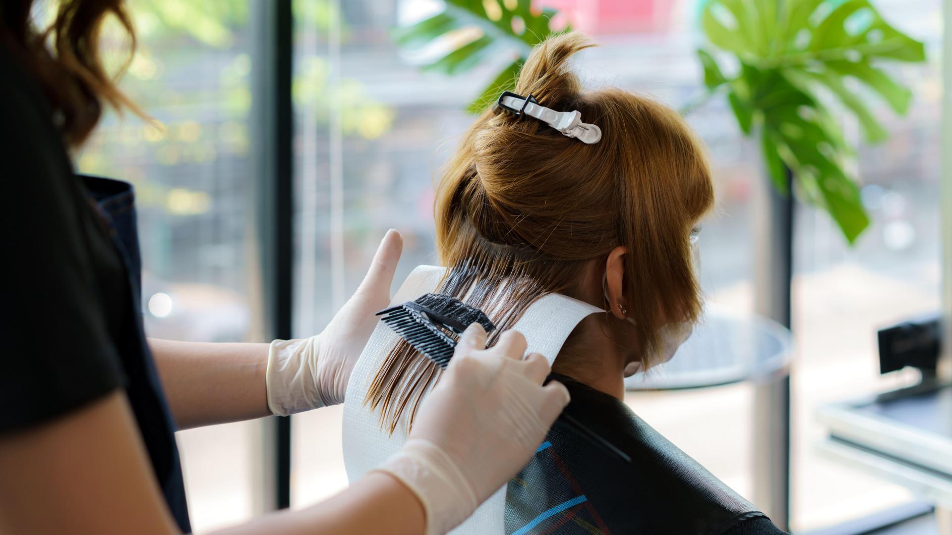 Затем он расчесал волосы и подровнял искусственные пряди по длине своей прически. После этого парикмахер взял спрей для нейтрализации желтизны и распылил на волосы, а потом высушил их феном.