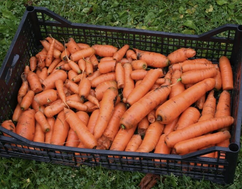 После уборки обрезайте ботву в два этапа: сначала оставьте 1-2 см, а через несколько дней укоротите до 0,5 см. Не рекомендуется мыть морковь перед хранением – просто дайте ей подсохнуть в тени в течение нескольких часов.