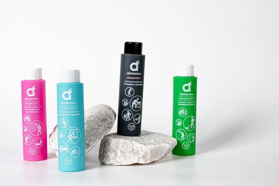 На разработку новой линейки особое внимание уделялось удобству применения. В коллекцию вошли четыре основных продукта: универсальный очиститель, состав для кухни, средство для ванной и очиститель стекол. Многоразовые спрееры разработки "Аллхимии" служат в десять раз дольше стандартных флаконов, что дополнительно снижает количество пластика и отходов.
