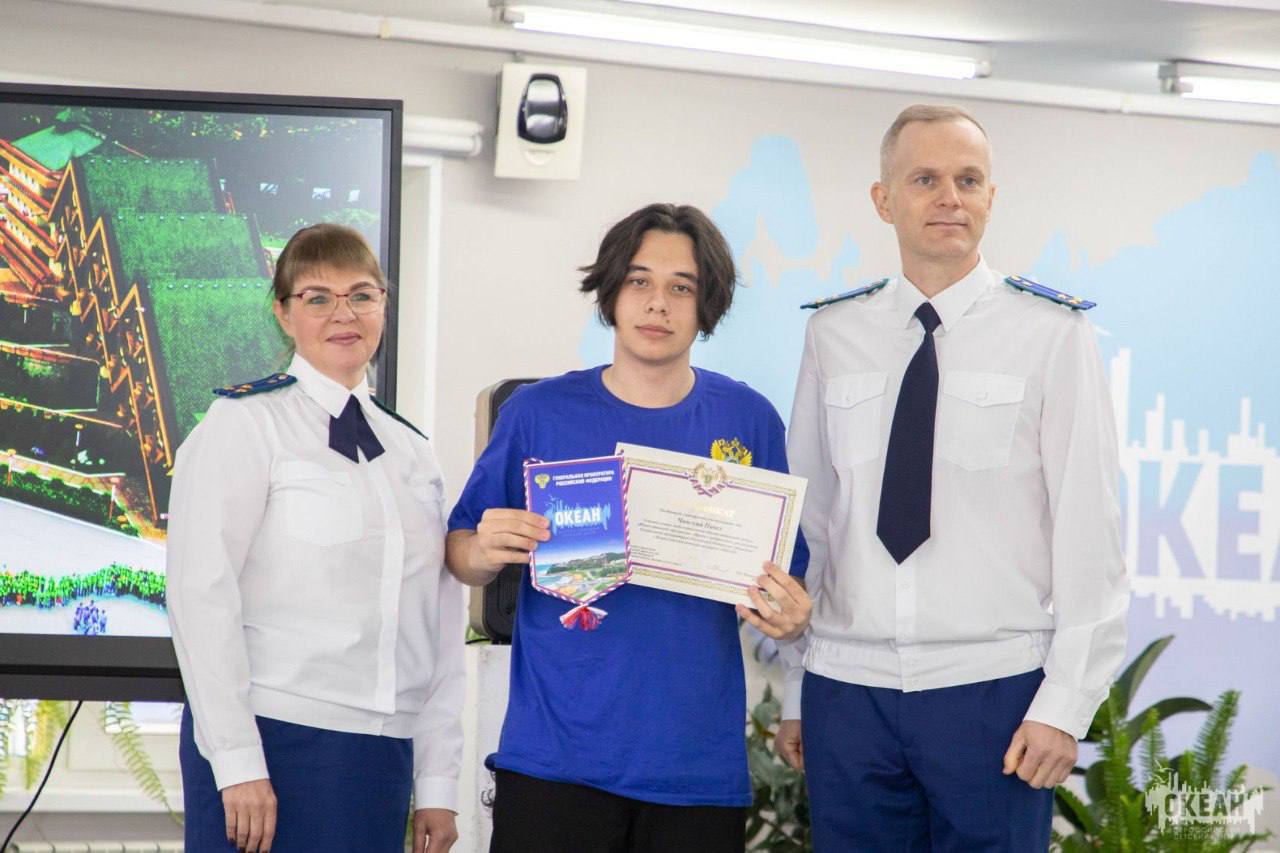 По традиции накануне состоялась торжественная церемония закрытия программы. В праздничном мероприятии приняли участие представители Генпрокуратуры России и Дальневосточного юридического института, которые поздравили ребят с окончанием смены, поблагодарили за активность и инициативность, вручили именные сертификаты и памятные подарки.