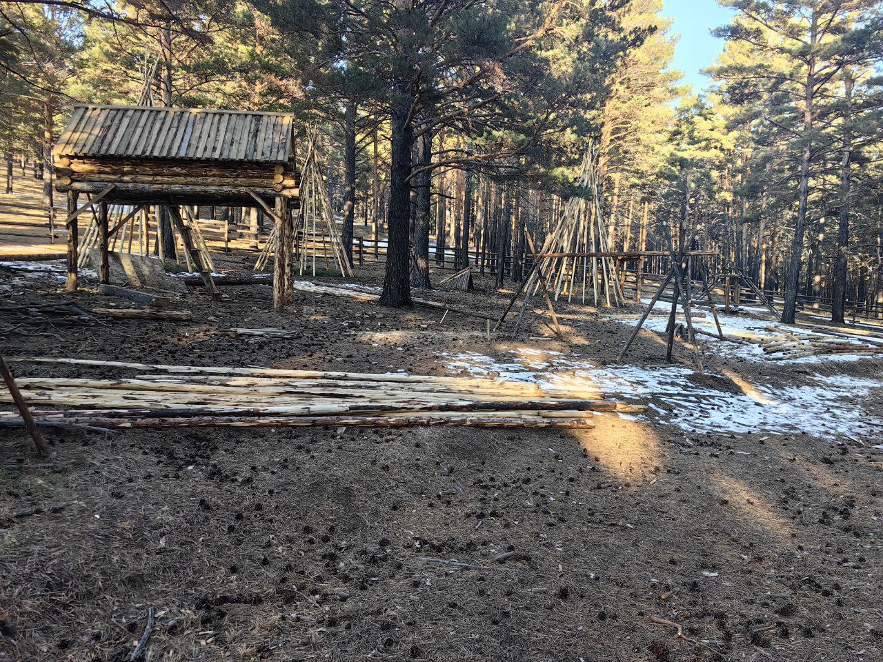 В комплексе также появятся деревянные юрты, как у коренных жителей Иркутской области сто лет назад. Сейчас готовят место под амфитеатр и строят 25-метровый острог.