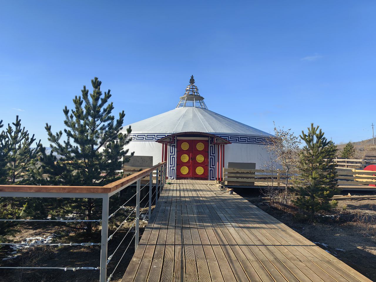 Строительство эвенкийского поселения готово на 80% — осталось покрыть чумы корой и оленьими шкурами. Подрядчик ищет мастеров-оружейников и обустраивает бурятские юрты, которые готовы на 91%.