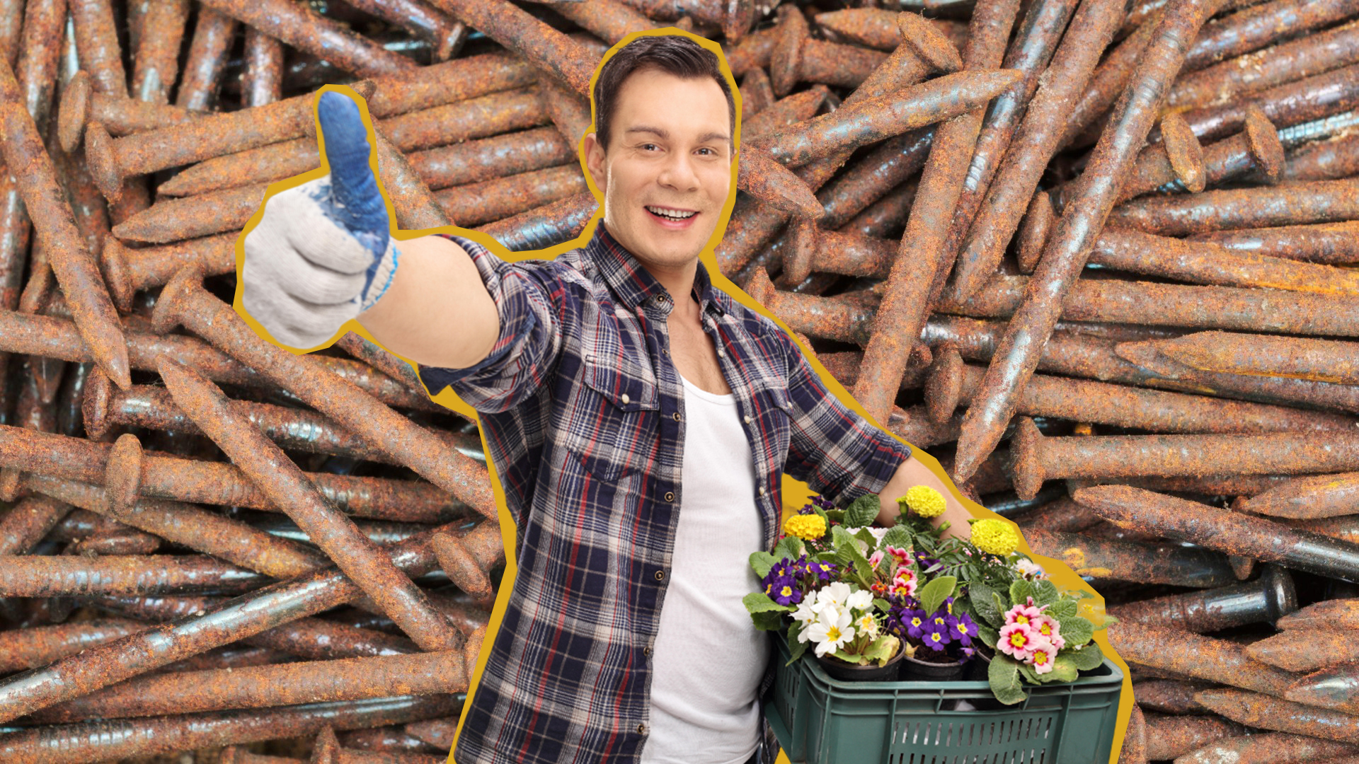 Листья бледнеют и теряют зеленый цвет, когда им не хватает хлорофилла. Чтобы он вырабатывался в полном объеме, растениям нужно железо. Его вы найдете в сарае или в кладовой.