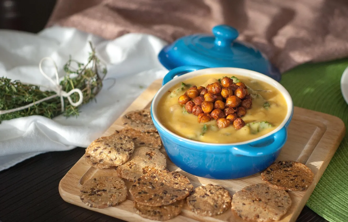 6. Подача. Разлить суп по тарелкам, украсить свежей зеленью и добавить гренки или кусочки сыра. Можно добавить обжаренный нут для разнообразия. Приятного аппетита!