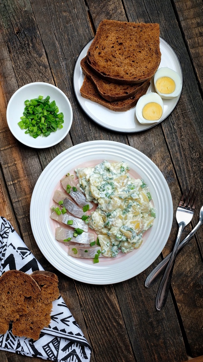 Неотъемлемая часть этого рецепта — подача с хлебом и, конечно, с селедкой. Такой тандем делает картофельный салат особенно аппетитным и сбалансированным. Простой, но очень вкусный, этот салат может стать настоящим украшением любого стола.