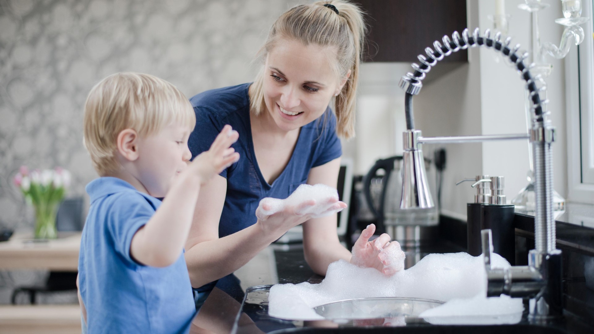 Справиться со стойкими загрязнениями поможет детское масло для кожи. Да, средство кажется необычным, но действует весьма эффективно. Достаточно нанести масло на губку и потереть раковину.