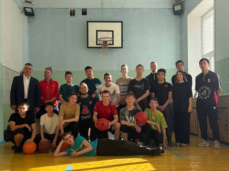 Заключительным этапом стал дружественный матч с участием профессиональных игроков и приятный сюрприз - Артем Волков и Александр Богданов подарили школе шесть баскетбольных мячей.