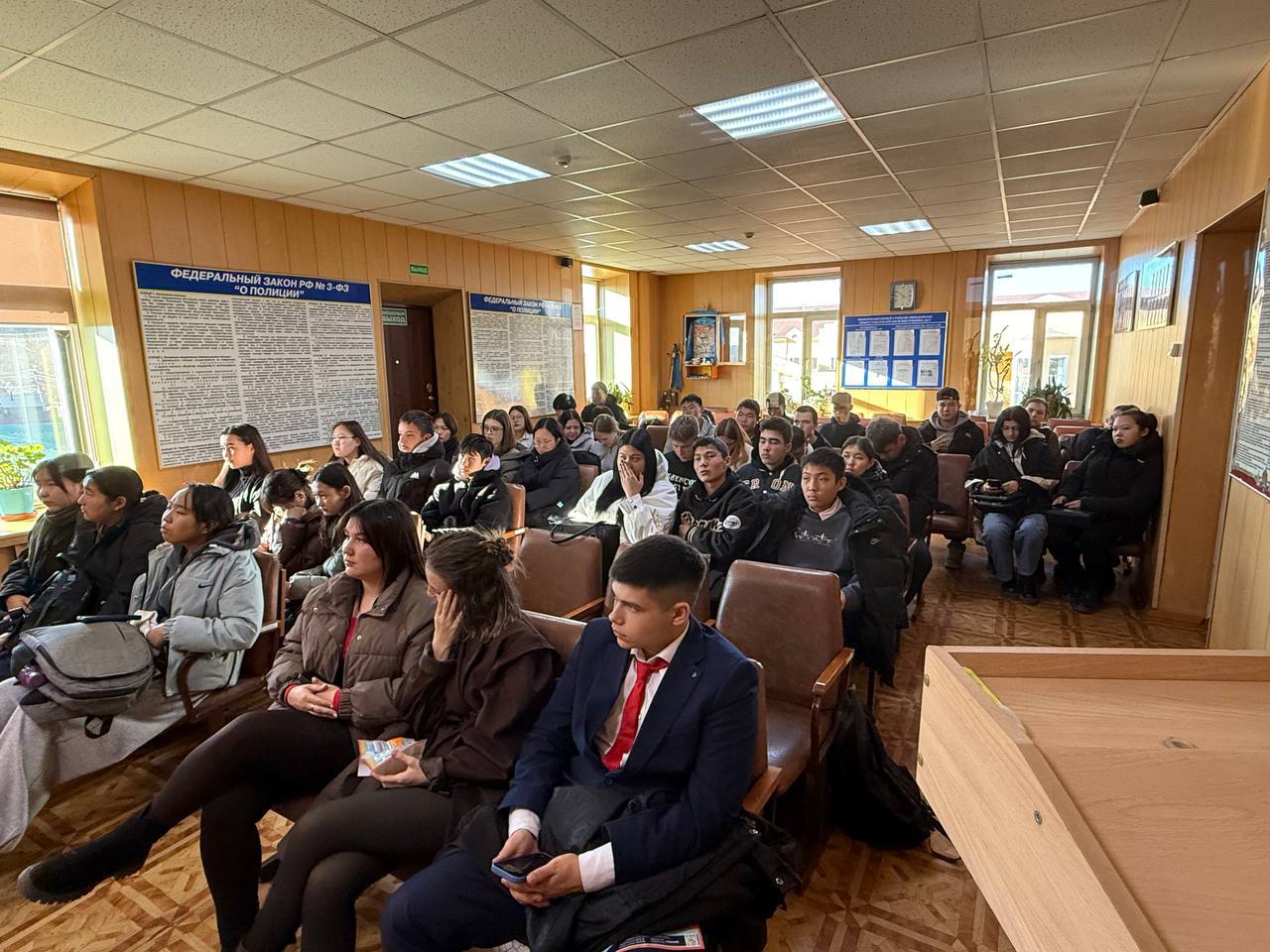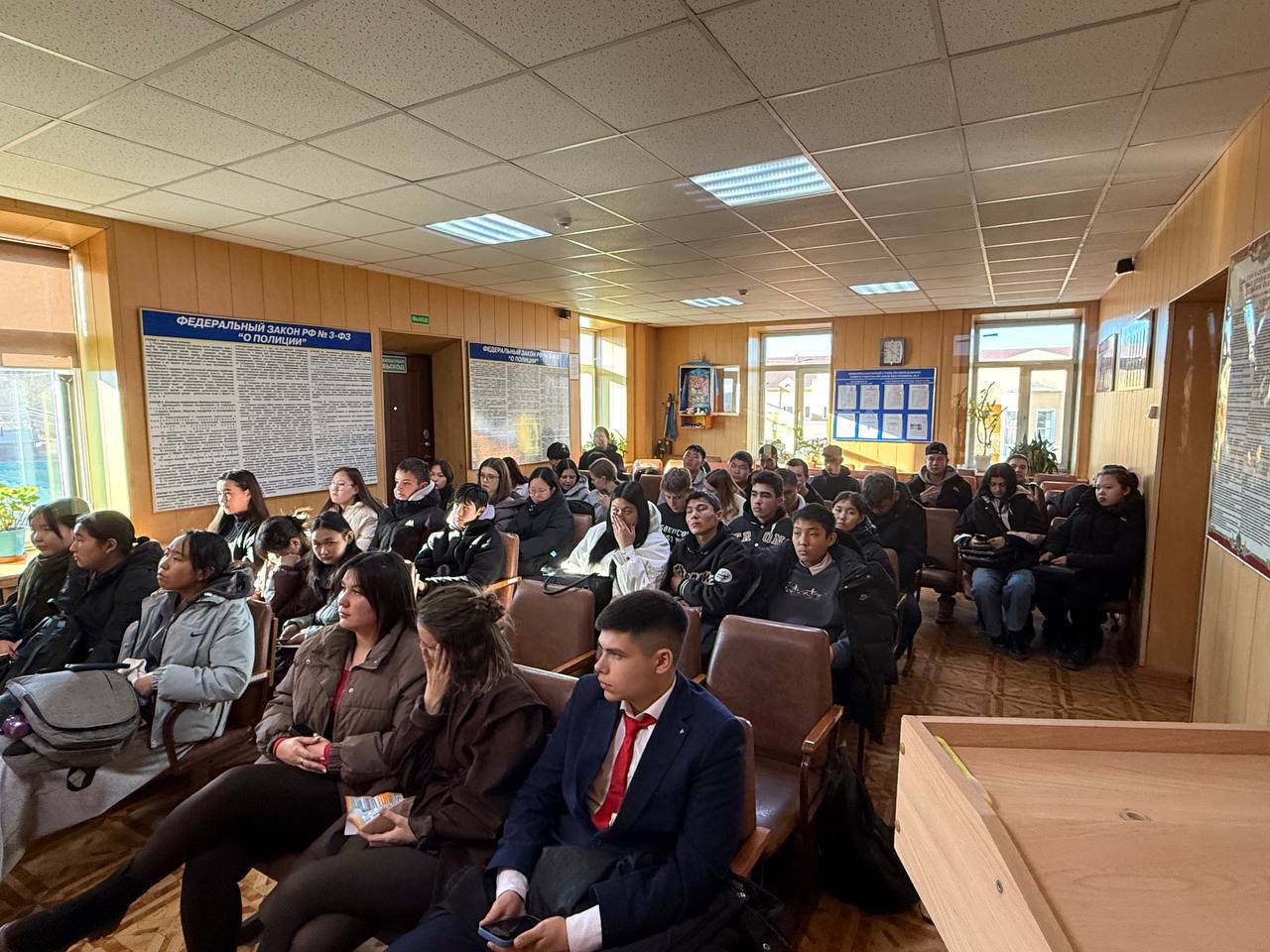 В рамках проекта студенты Агинского педагогического колледжа, учащиеся АОГИ И АСОШ 1 посетили МО МВД России «Агинский», где ребятам рассказали о поступлении в школу полиции, о требованиях к работе полицейского, об обмундировании и оружии, о вреде наркомании, об Агинском РОВД.