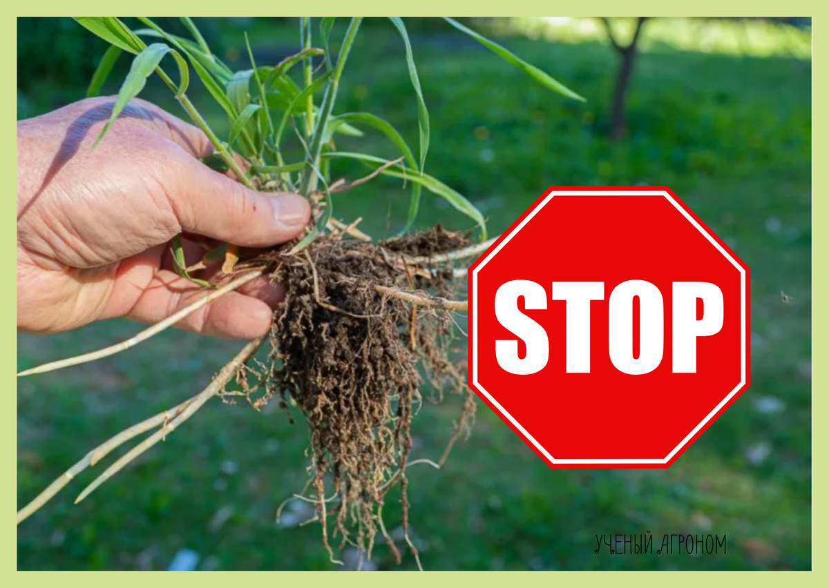 - Истощение корневой системы с помощью механической обработки и светоблокировки, например, укрытия почвы.