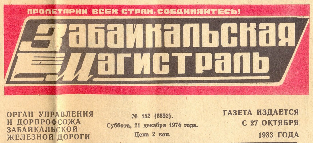 92 года назад, 27 октября 1933 года, в Чите начался выпуск газеты «Отпор» забайкальских железнодорожников. С 1953 года она носит название «Забайкальская магистраль».