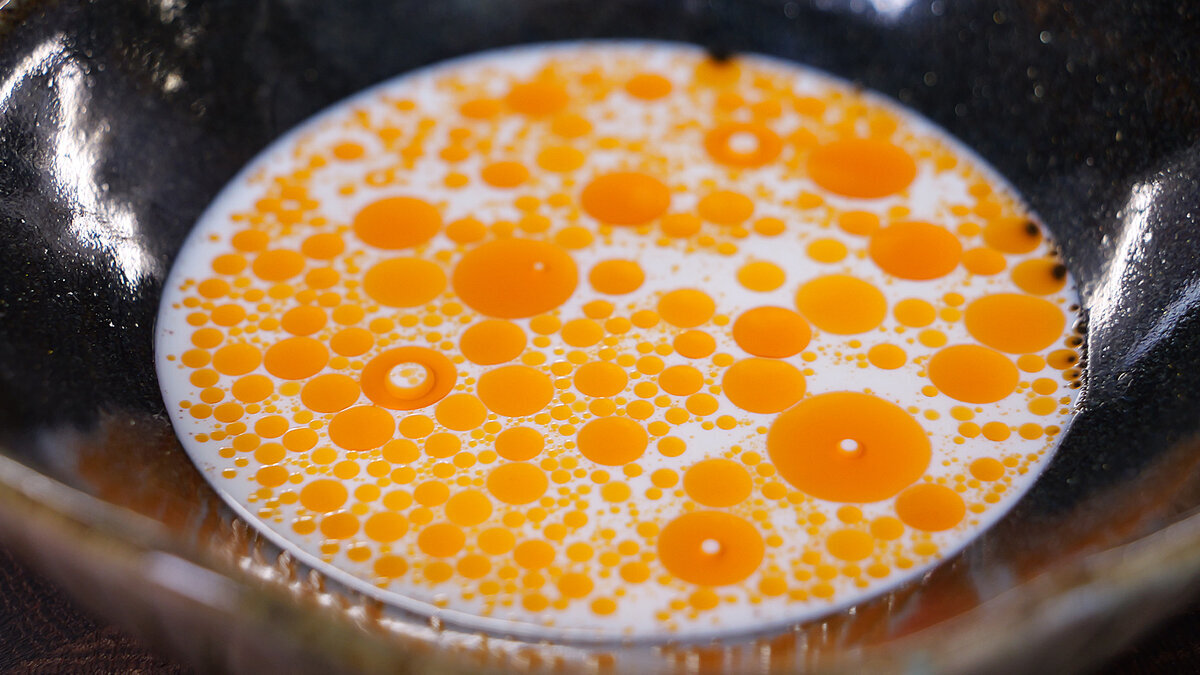 Создание красного масла – это нечто простое, но результат впечатляет. Достаточно взять сотейник, налить в него холодное растительное масло и добавить томатную пасту вместе с соусом Шрирача. Элементы необходимо тщательно перемешать и поставить на средний огонь. Важный момент – видеть, как смесь начинает закипать.