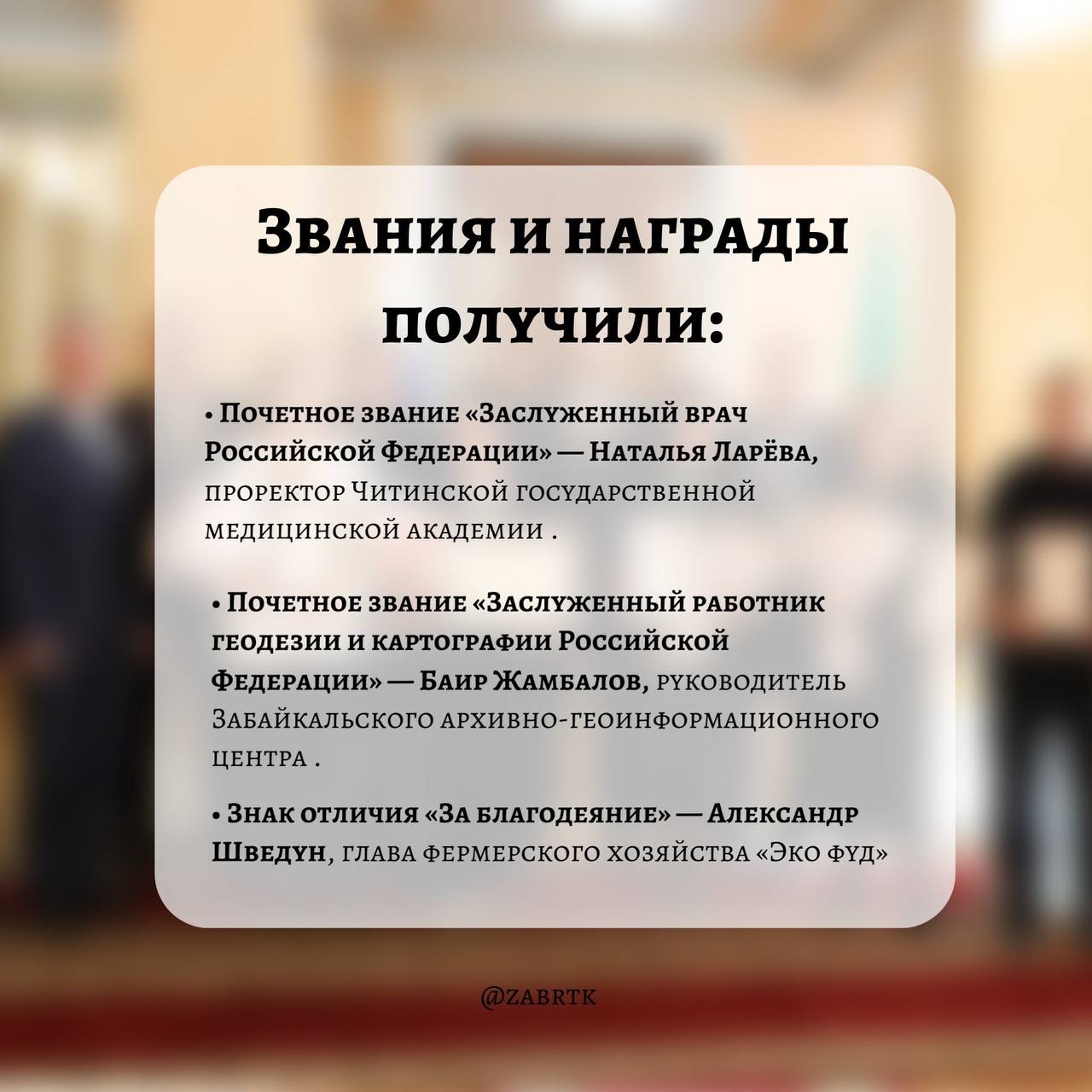 В колонном зале Дома офицеров 27 октября губернатор Забайкальского края Александр Осипов вручил забайкальцам награды президента Российской Федерации Владимира Путина и вице-премьера Правительства страны - полномочного представителя президента на...