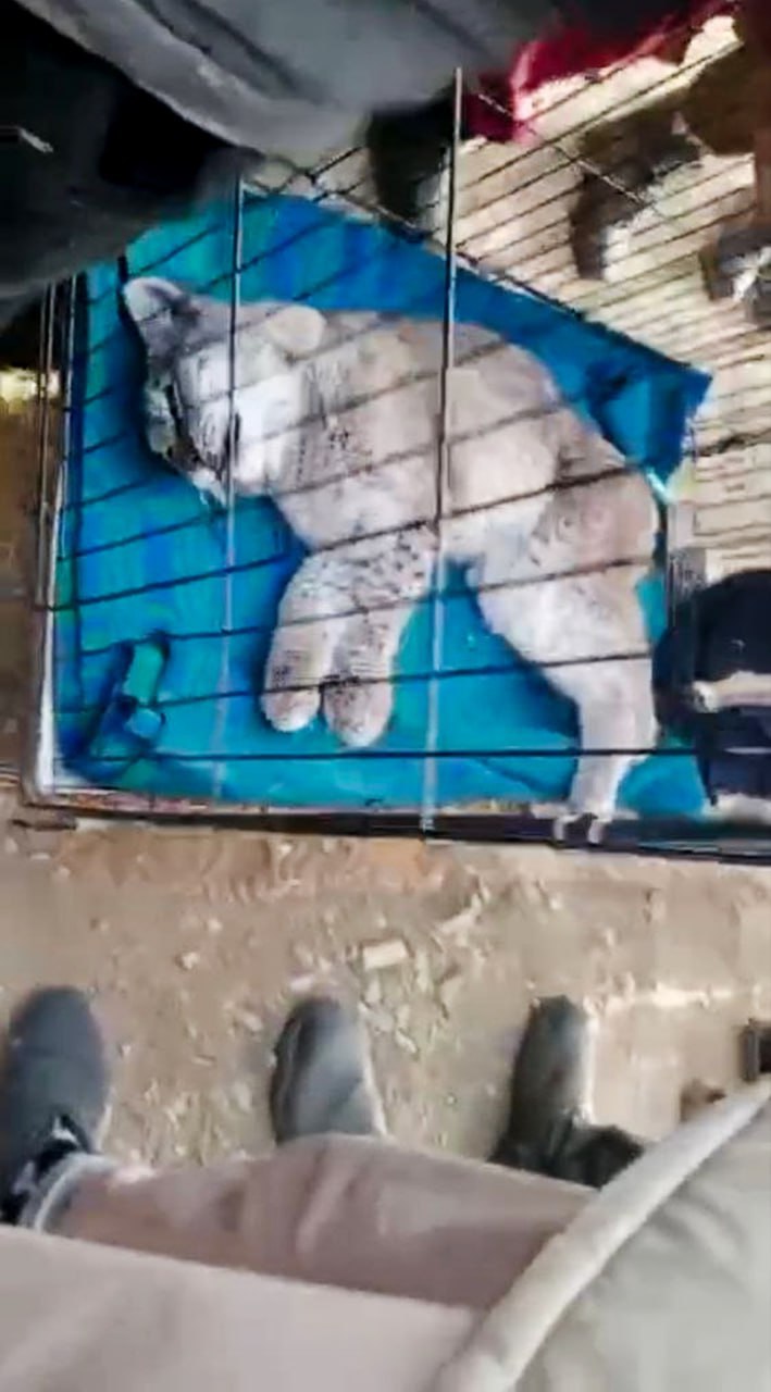 По словам местных жителей, зверя на деревянную опору ЛЭП загнали собаки. Спуститься обратно сама большая киса не решалась и на помощь вызвали ветеринаров со снотворным. С помощью автомобильной вышки специалист подстрелил рысь дротиком. После этого она...