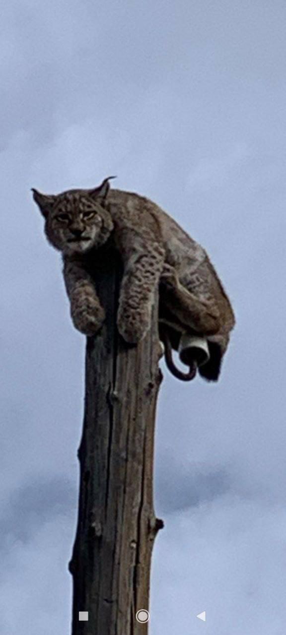 В Забайкалье спасли рысёнка, которого собаки загнали на столб.