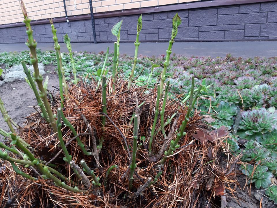 - Укрытие хвоей: обсыпьте куст хвойным опадом, заняв всю высоту растения. Это создаст защитный слой для корней.
