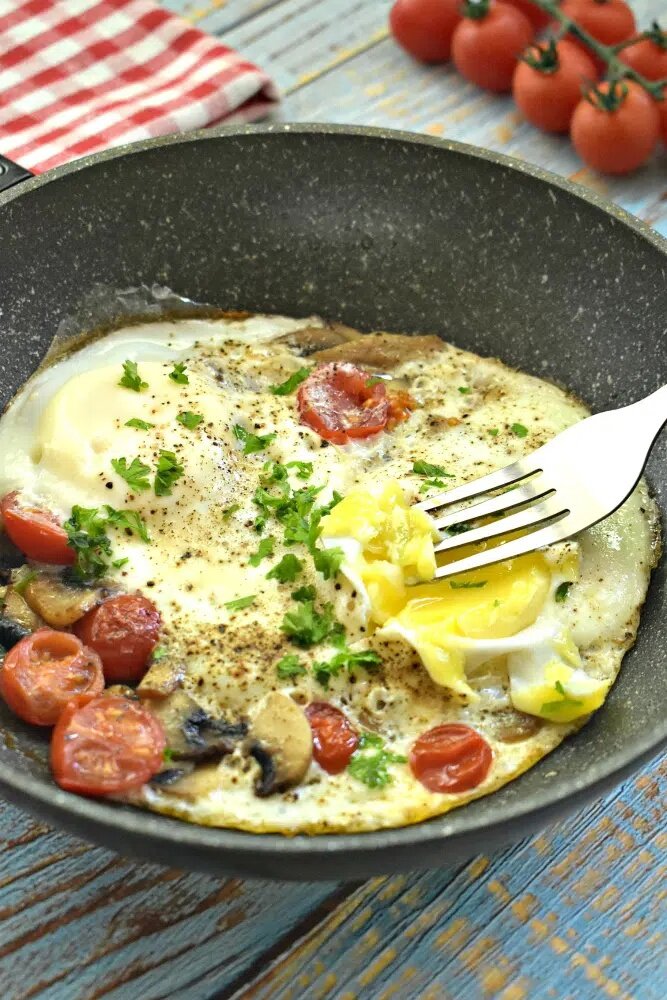 Это блюдо — именно то, что нужно для сытного, ароматного завтрака или лёгкого перекуса в течение дня. Яичница с грибами и черри станет настоящей находкой на вашей кухне. Удивите своих близких и насладитесь этим кулинарным шедевром!