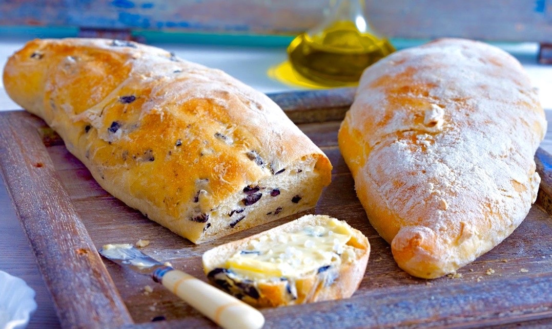 - Чиабатта с разнообразными добавками, такими как оливки или вяленые томаты