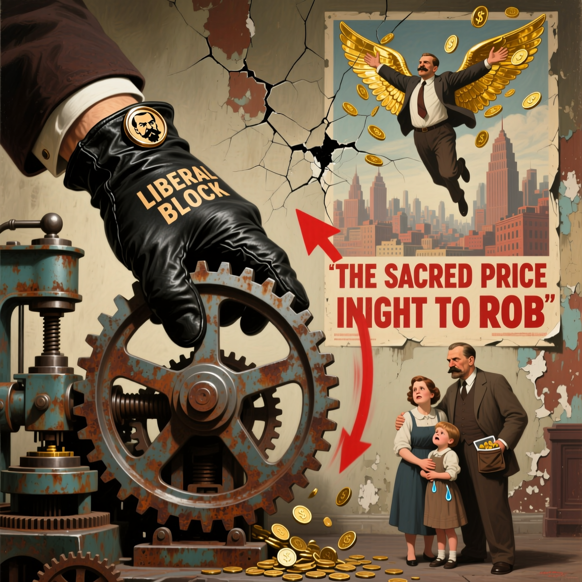 Критика также направлена в сторону экономики, где, как утверждается, "либеральная часть социально-экономического блока" считает нормальным право монополий на управление ценами. Это приводит к явлению, когда грабеж потребителей рассматривается почти как священное право. Российские либералы, вдохновленные идеями прошлых экономистов, уверены, что единственной целью бизнеса должно быть извлечение максимальной выгоды, даже если это ведет к росту цен.