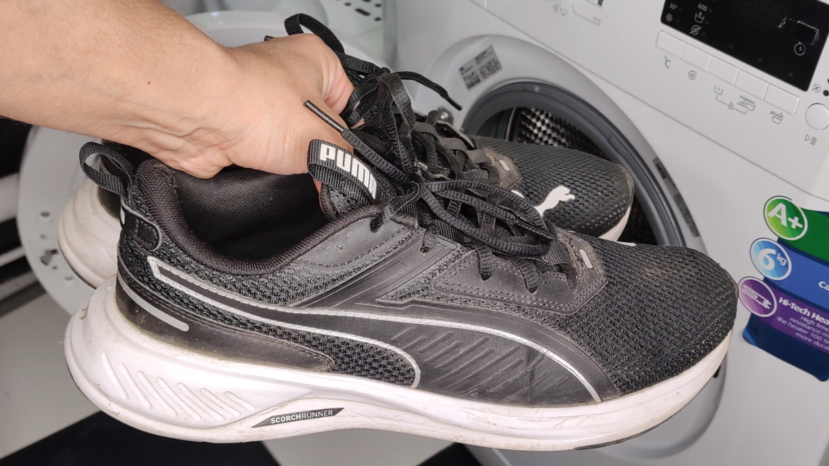 Кроссовки лучше всего помещать в специальный мешок для стирки. Это поможет избежать их повреждения во время цикла. Вместе с ними стоит добавить в барабан стиральной машины большое полотенце или простыню для заполнения пустого пространства. Это снизит трение и защищает обувь.