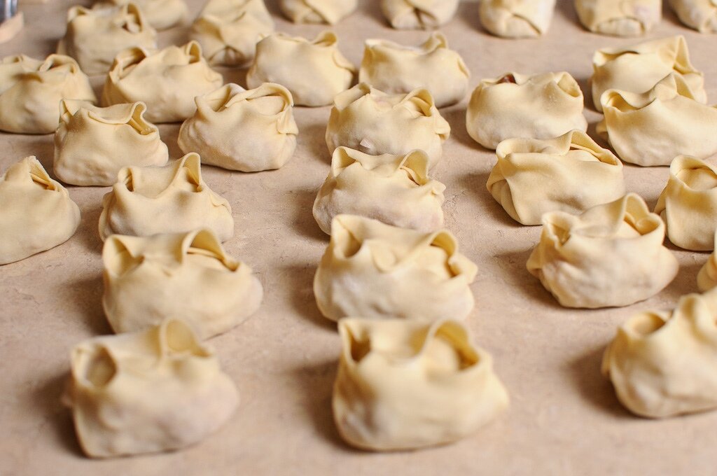 Первым шагом к созданию аппетитных мантов будет замешивание теста. В глубокой миске смешайте воду, яйцо и соль. Постепенно добавляя муку, замесите тугое тесто и оставьте его на 20 минут, чтобы оно отдохнуло.