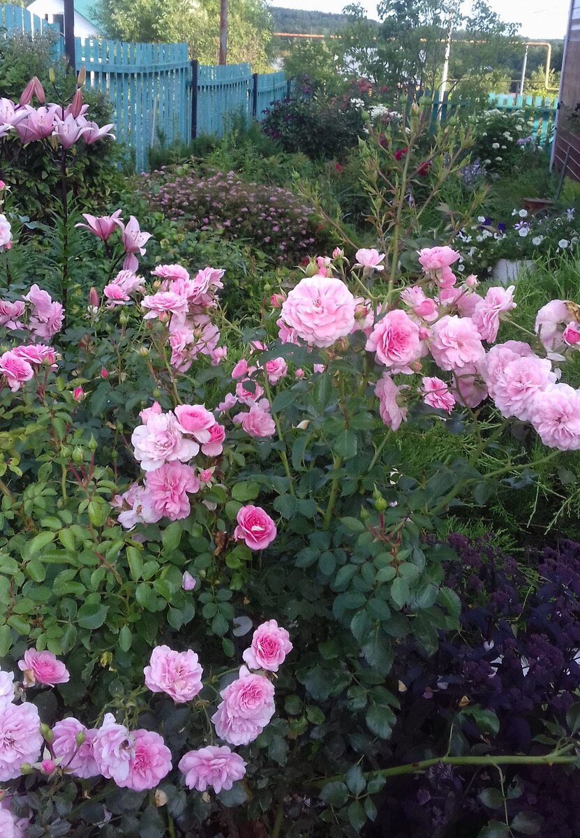 - Розы различных сортов, такие как "Розариум Ютерсен" и "Боника".