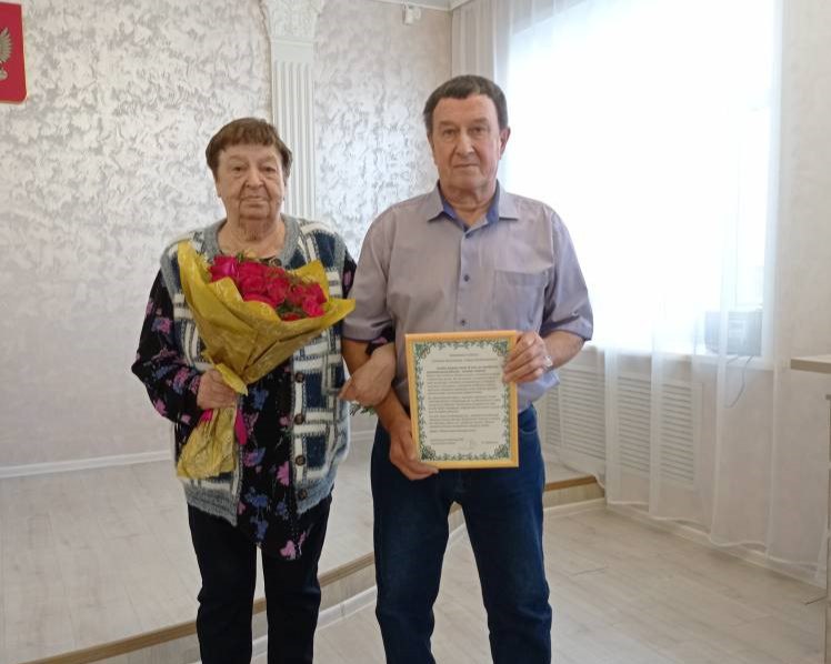 Юбиляров пришли поздравить дети, внуки, родные и близкие люди. С поздравительным словом выступили замглавы округа по соцвопросам Елена Ибрагимова, заведующая отделом ЗАГС предложила юбилярам расписаться в книге почетных юбиляров, вручила поздравительные письма. Работники дома культуры подготовили музыкальные поздравления.