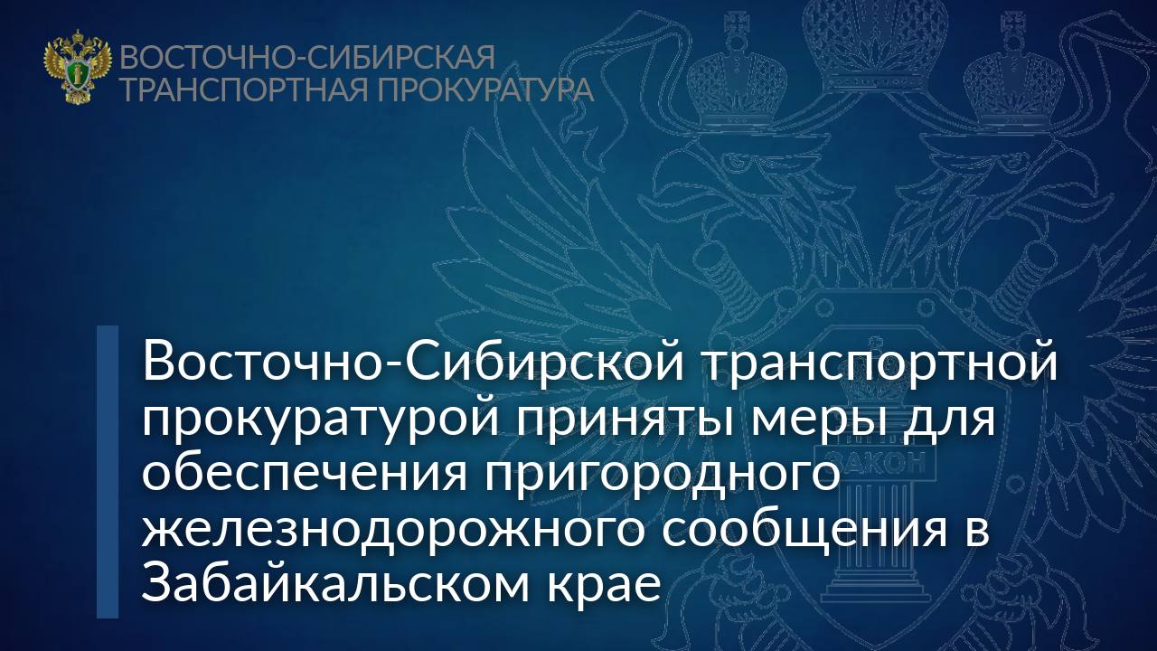 Восточно-Сибирской транспортной прокуратурой приняты меры для обеспечения пригородного железнодорожного сообщения в Забайкальском крае