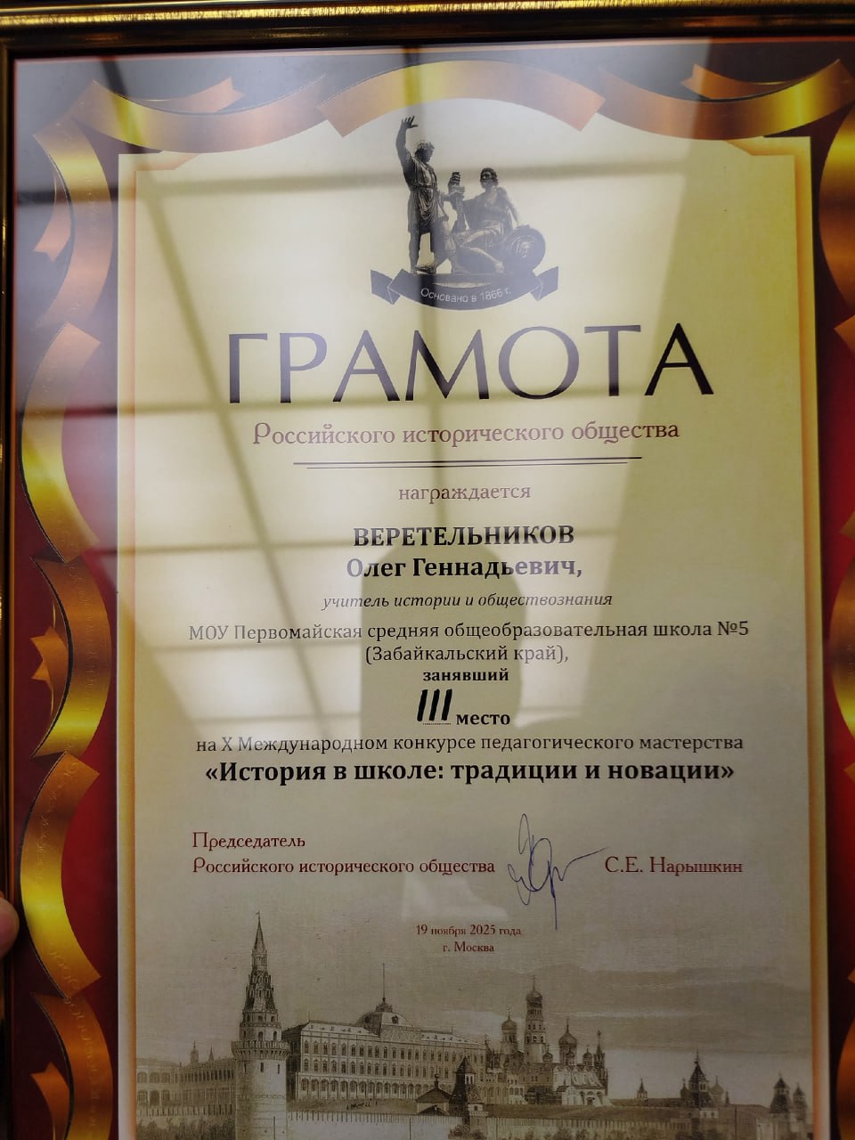 Учитель из Забайкалья занял третье место в X Международной премии для учителей «История в школе: традиции и новации»