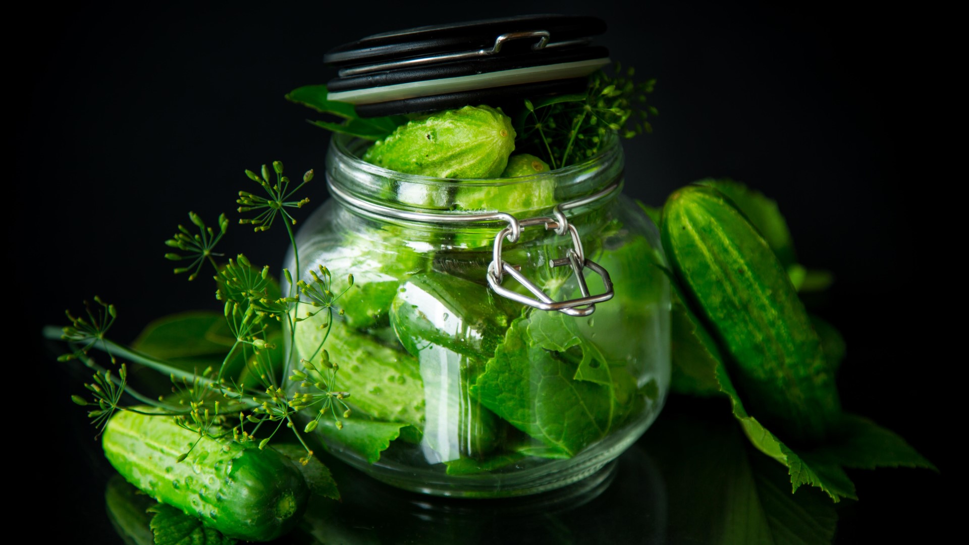 Хорошо помойте огурцы, дайте им стечь. Половину плодов положите в большую кастрюлю, сверху — укроп и нарезанный чеснок. Его режут, чтобы он быстрее отдал свой сок и пропитал огурцы. Следующим слоем выложите оставшиеся овощи.