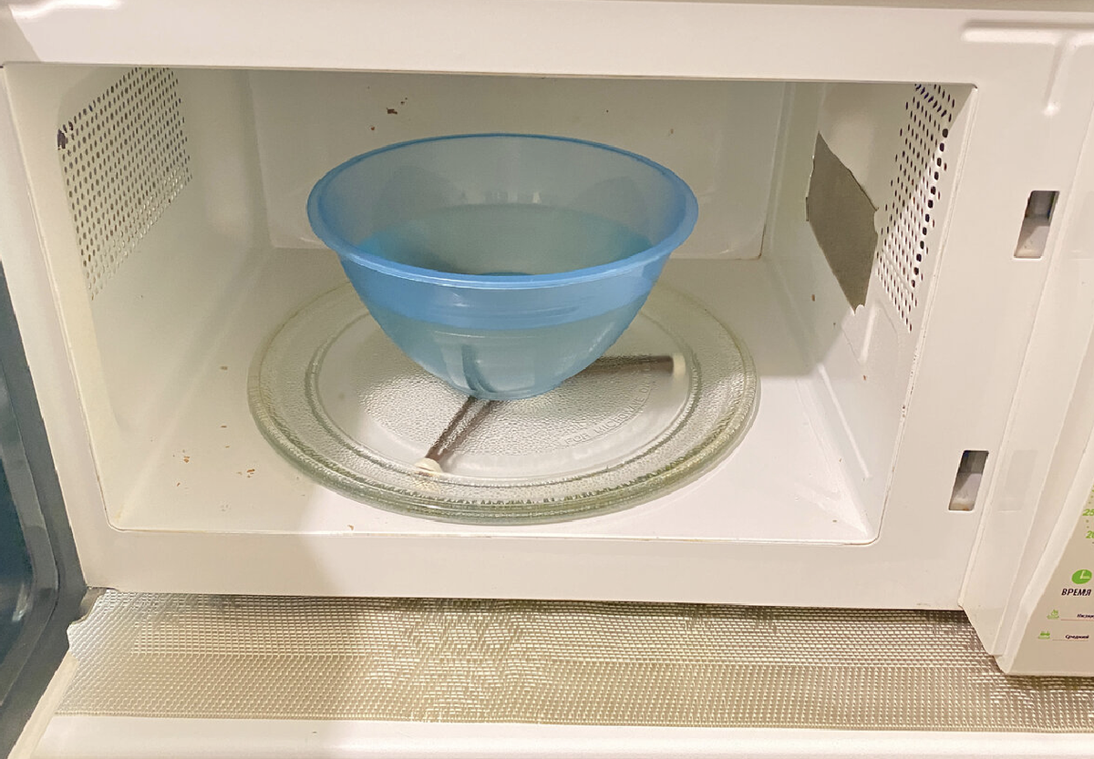 Смешав эти ингредиенты, поместите емкость с раствором в микроволновую печь и включите аппарат на полную мощность на пять минут. Это позволит пару активизировать действие соды и размягчить загрязнения, что существенно упростит процесс уборки.