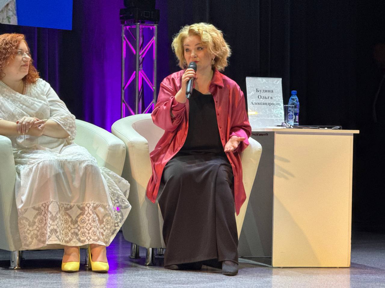 К разговору на панельной дискусси «Семья - основа мира» присоединилась актриса, режиссёр, продюсер, общественно-политический деятель, лауреат Государственной премии РФ в области культуры и искусства Ольга Будина.