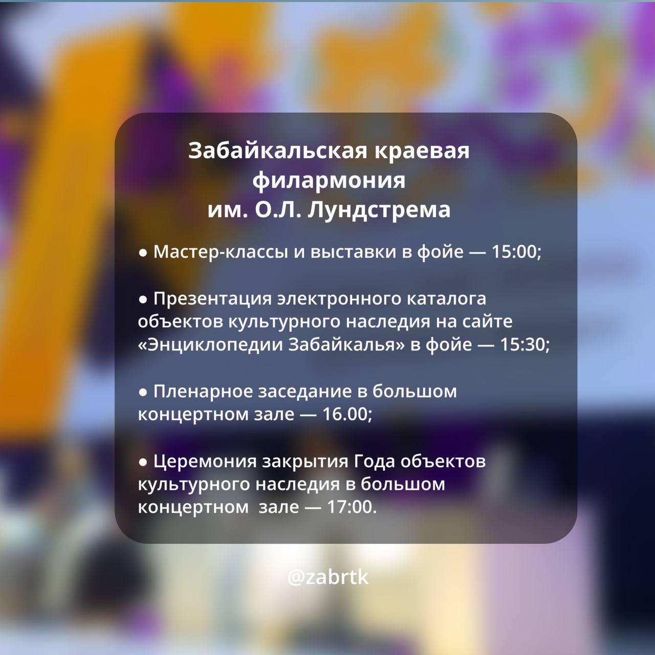 «Завершая Год объектов культурного наследия нам важно не только подвести его итоги, отметить достижения и результаты, а в большей степени – наметить дальнейшие шаги в деле восстановления, сохранения, популяризации наших объектов культурного наследия, чтобы они стали не просто известны, но и популярны среди забайкальцев и туристов, которые к нам приезжают»