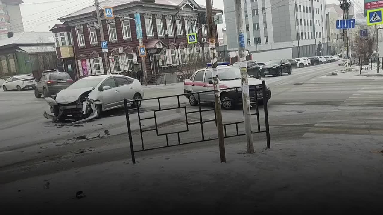 От удара первая машина отлетела на парковку, где задела ещё три автомобиля.