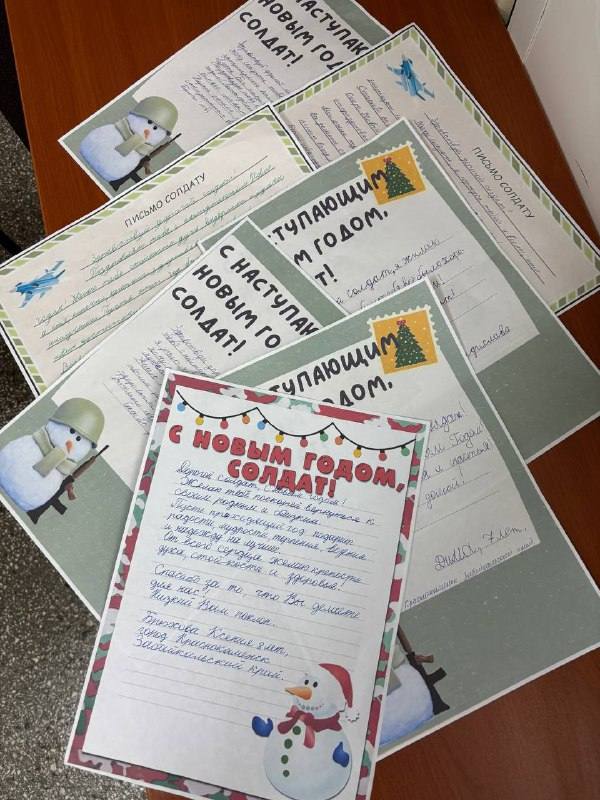 Дети сотрудников также не остались в стороне. Они написали трогательные письма – поздравления с наступающим Новым годом, чтобы согреть сердца солдат и медицинских работников.