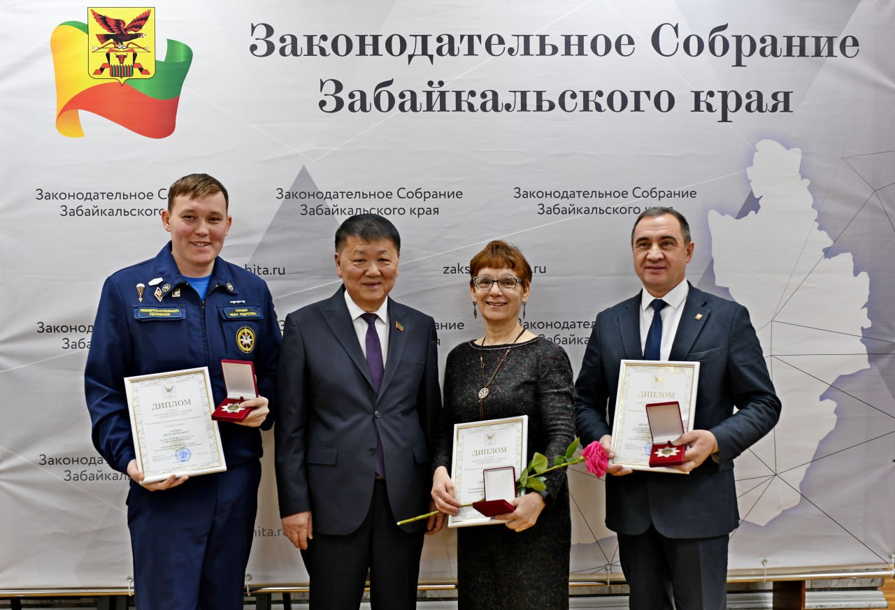 Первыми обладателями новой парламентской награды стали создатель лаборатории робототехники ЗабГУ Иван Бармин, серебряный волонтер Елена Шахова, а также глава Ингодинского района Читы Михаил Шибаев.
