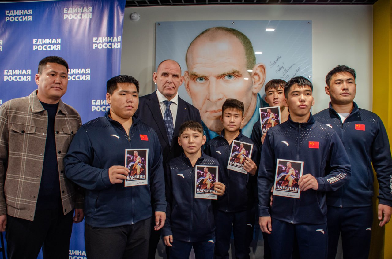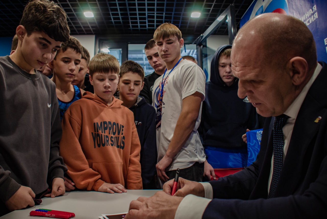 Конечно, Александр Карелин встретился и с теми, ради кого строился этот комплекс — юными борцами. Никто из ребят не остался без автографа и фотографии с чемпионом.
