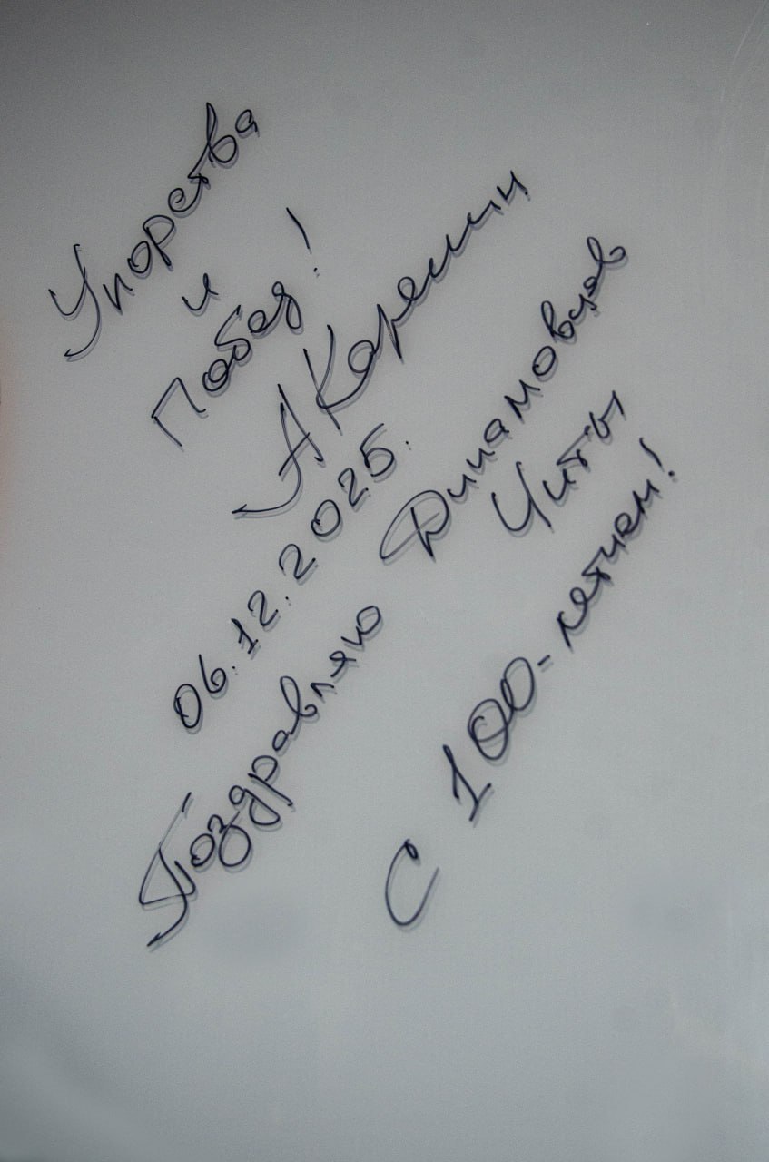 А на панно со своим изображением, Карелин оставил пожелание, которое будет вдохновлять еще многие поколения динамовцев: «Упорства и побед!».