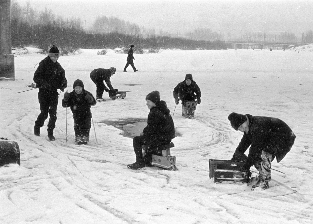 На фото – 1997 год, река Читинка, зимние забавы. Катание на самокатах под пешеходным мостом в 1-м микрорайоне.
