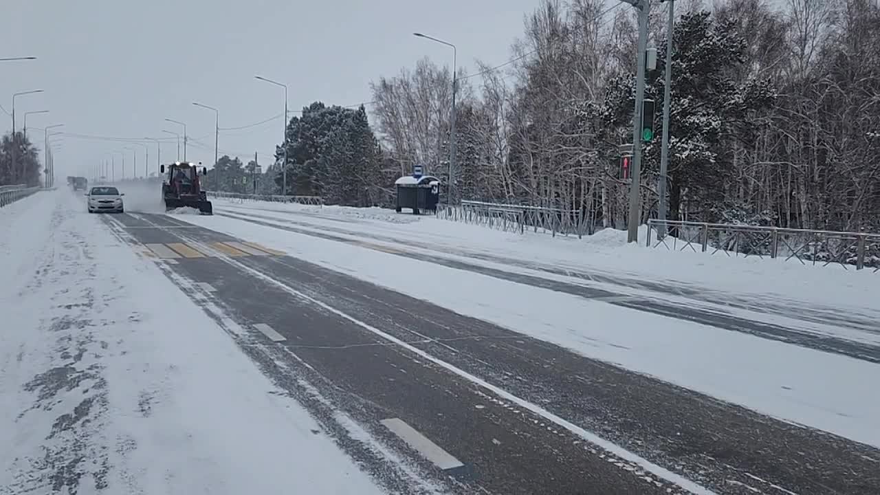 Снег убирают с проезжей части, тротуаров и остановок, а также посыпают противогололедным материалом.
