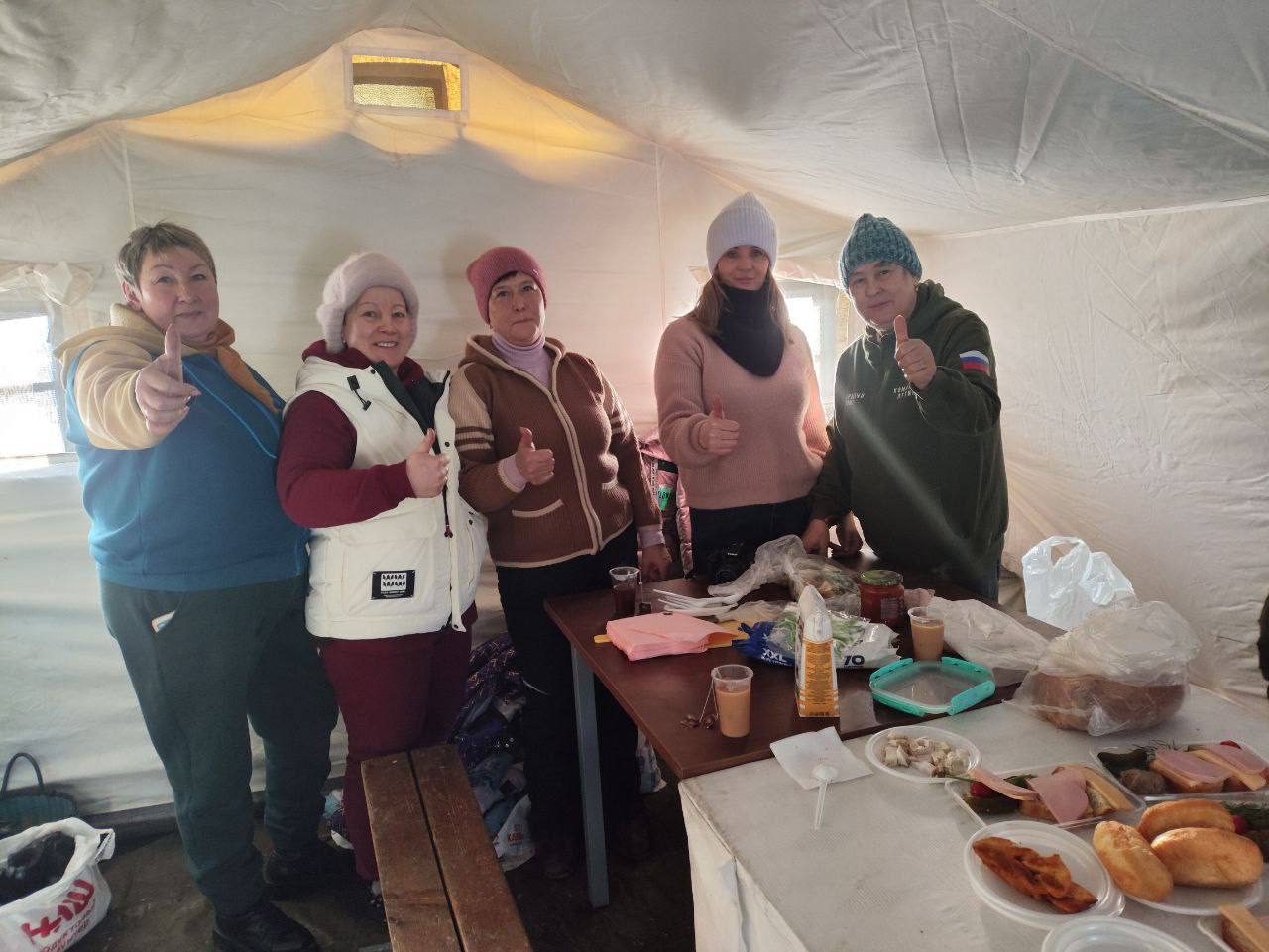 Погрузка вагонов длилась весь день, пункт обогрева обеспечили «Гураночки» и «Союз женщин г. Борзя и Борзинского района» напоили всех горячим чаем из самовара и угостили домашней выпечкой и соленьями.