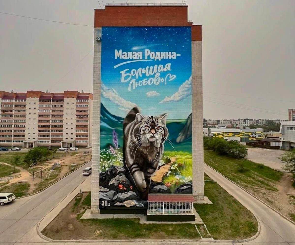 Напомним, в 2019 году дикий кот манул стал символом атомного города Краснокаменска. В урановой столице России этому суровому и харизматичному зверю даже посвятили большой мурал - на фасаде девятиэтажного дома появился манул на фоне забайкальских сопок и бескрайнего неба с надписью «Малая Родина - большая любовь».