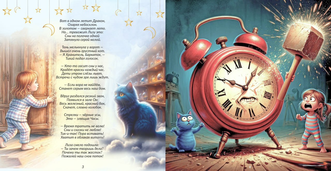 Наталья Ромащенковзяла первое место в номинации «Полцарства за сказку», сгенерировав детскую книгу с иллюстрациями «Магазин детских снов» про девочку Лизу, которая попала в волшебный сон с котом Бархатком.