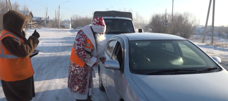 Сегодня на нескольких переездах Забайкальской железной дороги водителей, вместе с сотрудниками магистрали встречал — Дед Мороз. И это не чудо, а предновогодняя профилактическая акция по предупреждению ДТП на переездах.