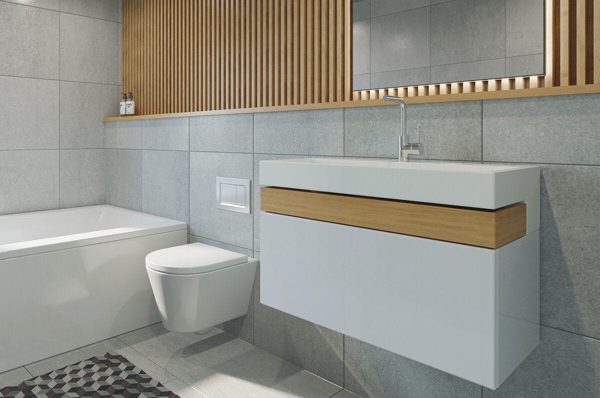 Современные унитазы без обода и подвесные модели избавляют от труднодоступных мест, где может скапливаться грязь, а значит, упростят уход за чистотой полов. Ванны и раковины с эмалевым покрытием намного проще мыть, так как загрязнения легче снимаются с гладкой поверхности.