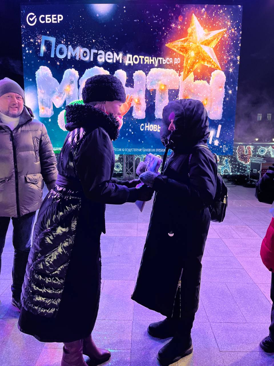 Читатели @chitaru75 посчитали дом Людмилы Губовой самым красивым и новогодним. Сегодня на сцене победительница получила поздравления и приз от заммэра по соцвопросам Людмилы Эмих — сертификаты на бытовую технику и разные подарки от партнера конкурса читинского отделения Сбербанка.