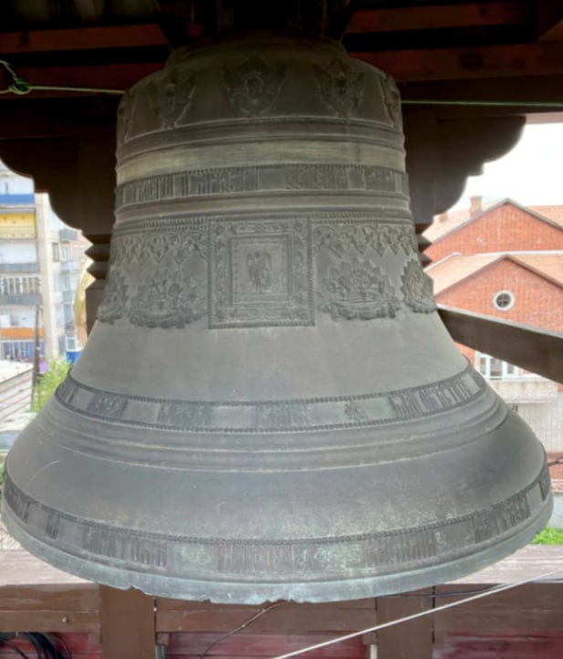 Колокол из группы благовестников, в верхней части украшен поясом из шестикрых серафимов, ниже отлита надпись: «Господи возлюбих благолепие дому Твоего, и место селения славы Твоея» (Пс. 25:8). В средней части надпись: