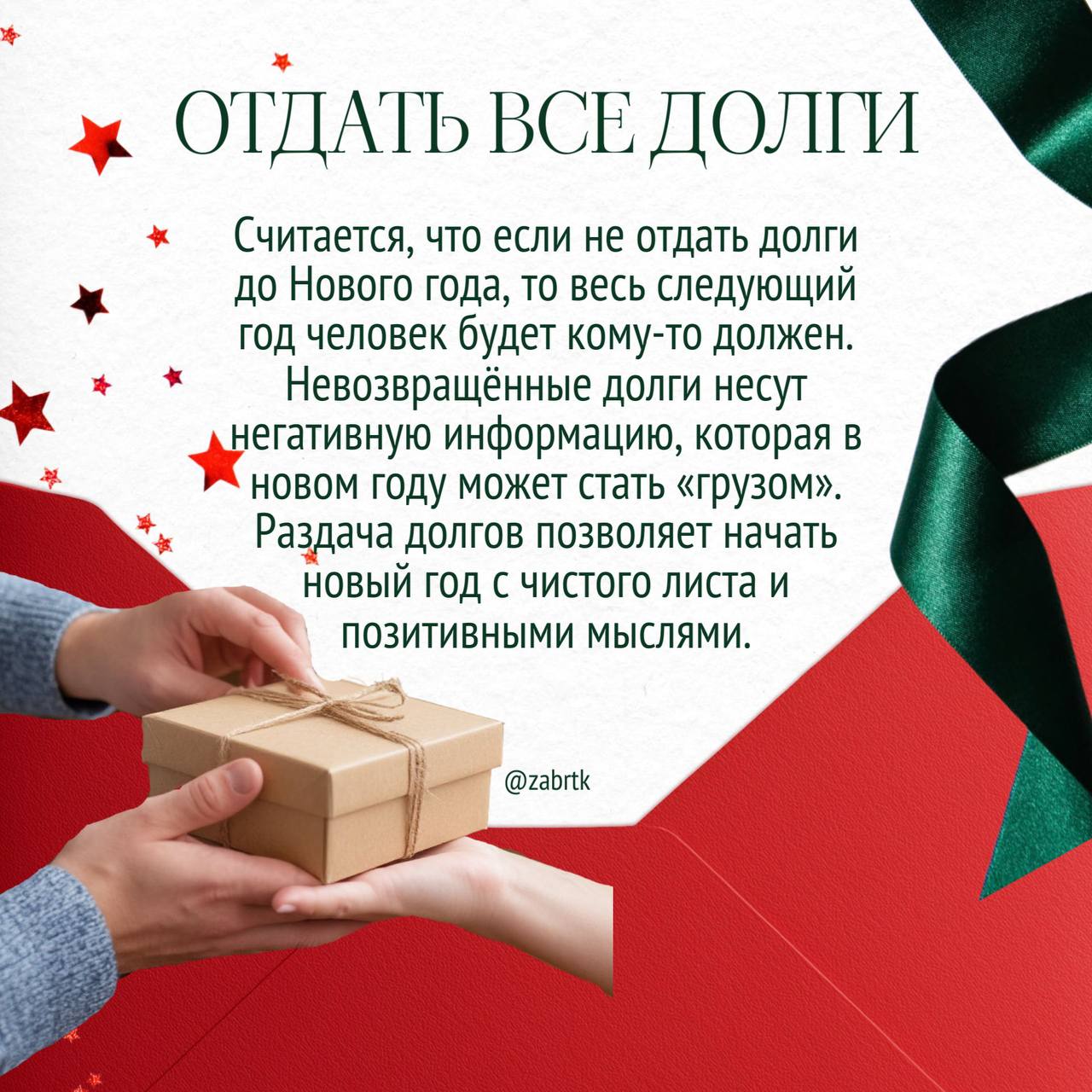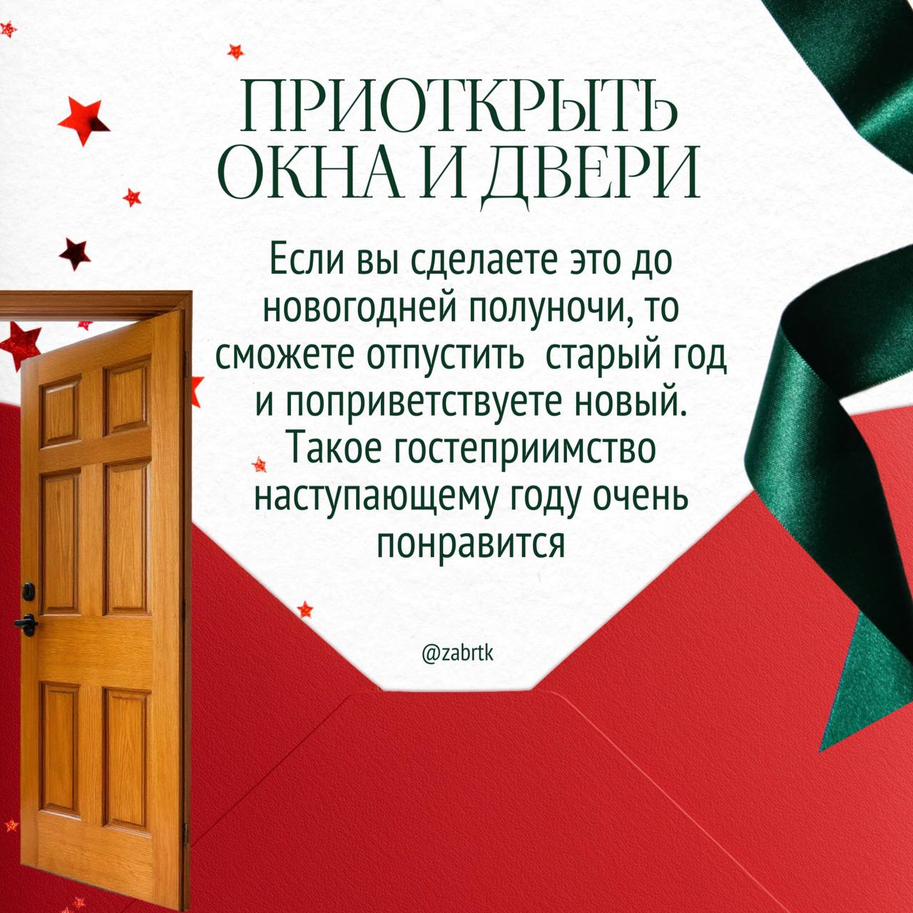 Нужно сделать всё!Мы собрали для вас популярные приметы, которые нужно сделать в уходящем году, чтобы привлечь благополучие и успех в новом году.А какие предновогодние приметы соблюдаете вы? @zabrtk | Мы в MAX